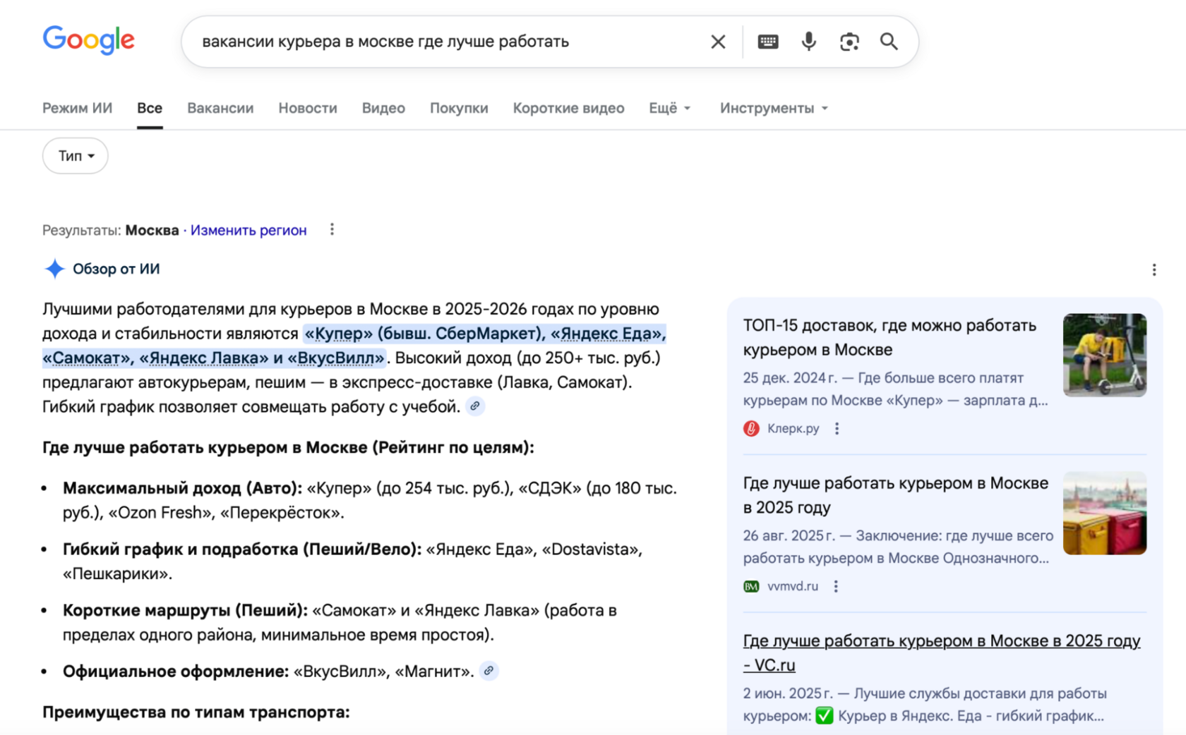 Как это работает:Шаг 1. Задаём вопрос в GPT с веб-поискомОткрываете GPT, включаете веб-поиск и задаёте запрос — например, «Какие варианты подработки для студента есть в Москве?»