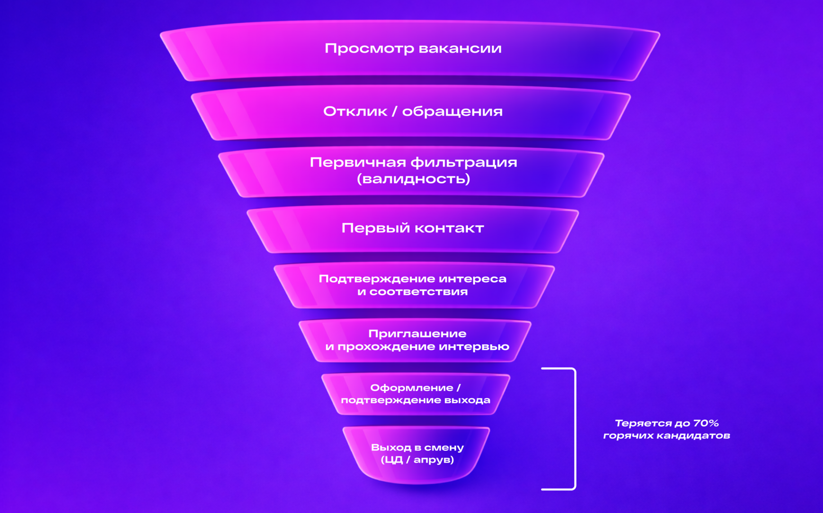 8 причин, почему кандидаты не выполняют целевое действие.4. Информировать о дальнейших шагах с четким дедлайном, которые кандидату требуется сделатьНапример, вам поступит финальный звонок для приглашения на интервью. Пожалуйста ожидайте звонок в течение 3 часов с номера такого-то (если известен / промаркирован). Обратите внимание, если вы работаете с оффером, в котором подключен AI-скоринг, первичный звонок кандидату может поступить от робота. Цель такого звонка — подтвердить намерение кандидата в рассмотрении вакансии. Звонки в обязательном порядке маркируются, поэтому кандидаты понимают, что им звонят по вопросу поиска работы. Подробнее об этом мы писали отдельный пост — можно