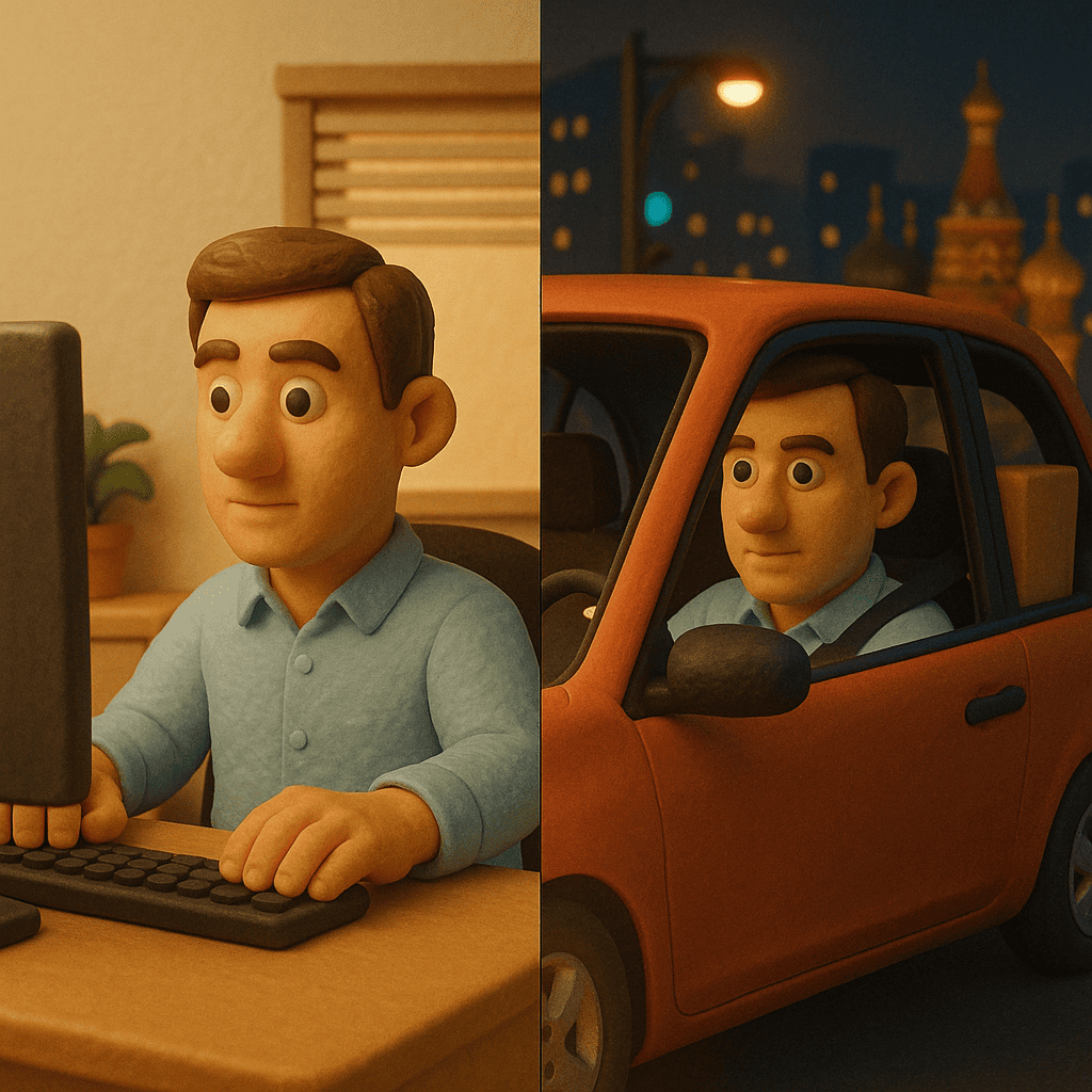 Курьер на авто компании: опытный, прижимистый, чуть уставший