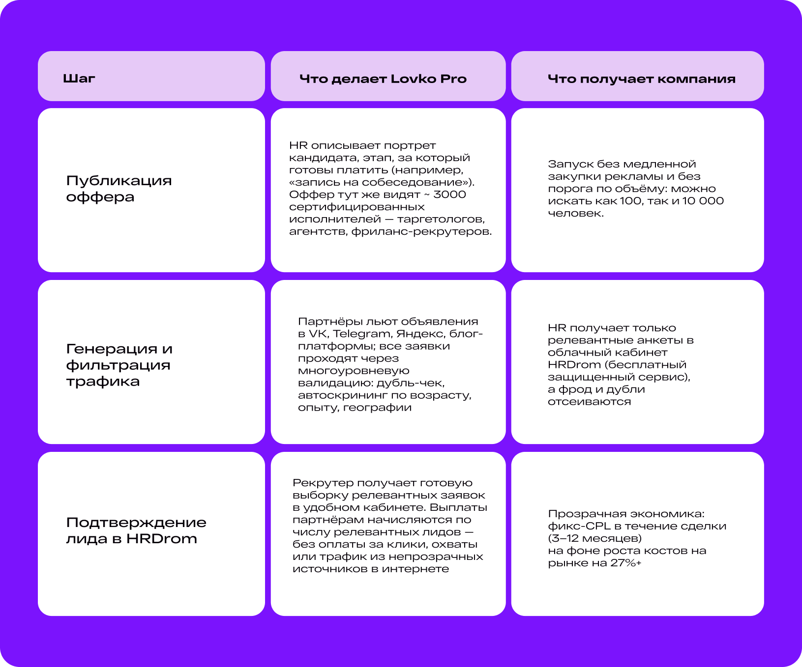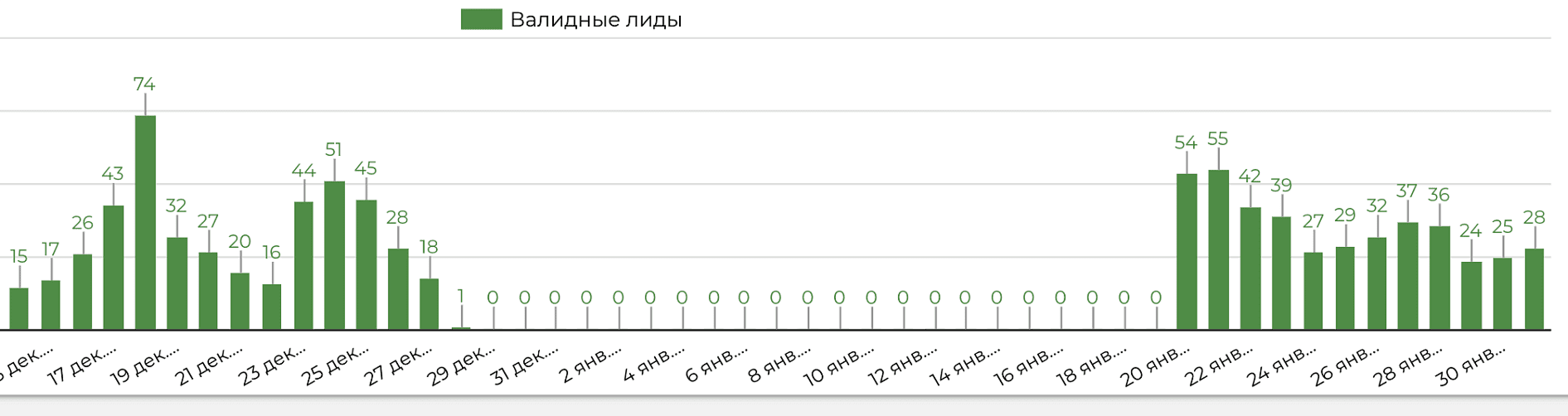 _________Примечание: роста CPL (+10–15%) могло и не быть, если бы проект не прерывался в течение года по причине внутренних согласований на стороне клиента. Lovko.Pro можно подключить сразу на полгода или год — цена квалифицированного лида будет фиксированной вне зависимости от медиаинфляции и событий на рынке.