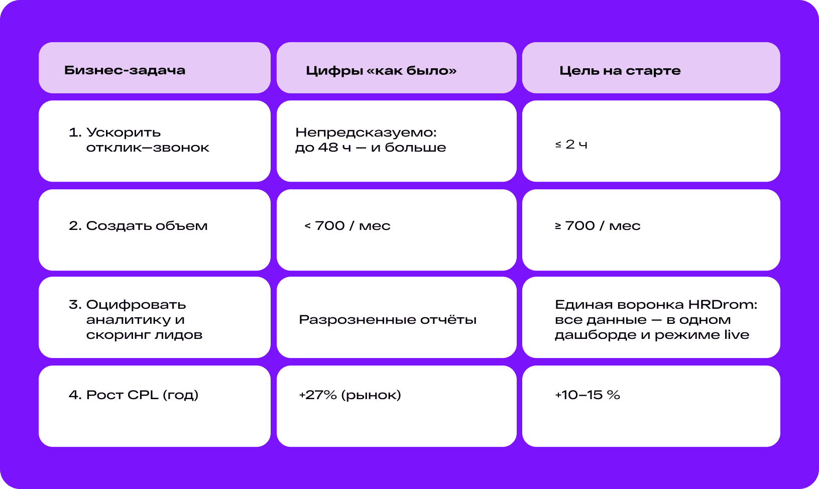 Главное — люди:Базовых лидов за год: 14 641. Это входящие заявки от уникальных кандидатов через брендированный рекрутинговый сайт, интегрированный с платформой