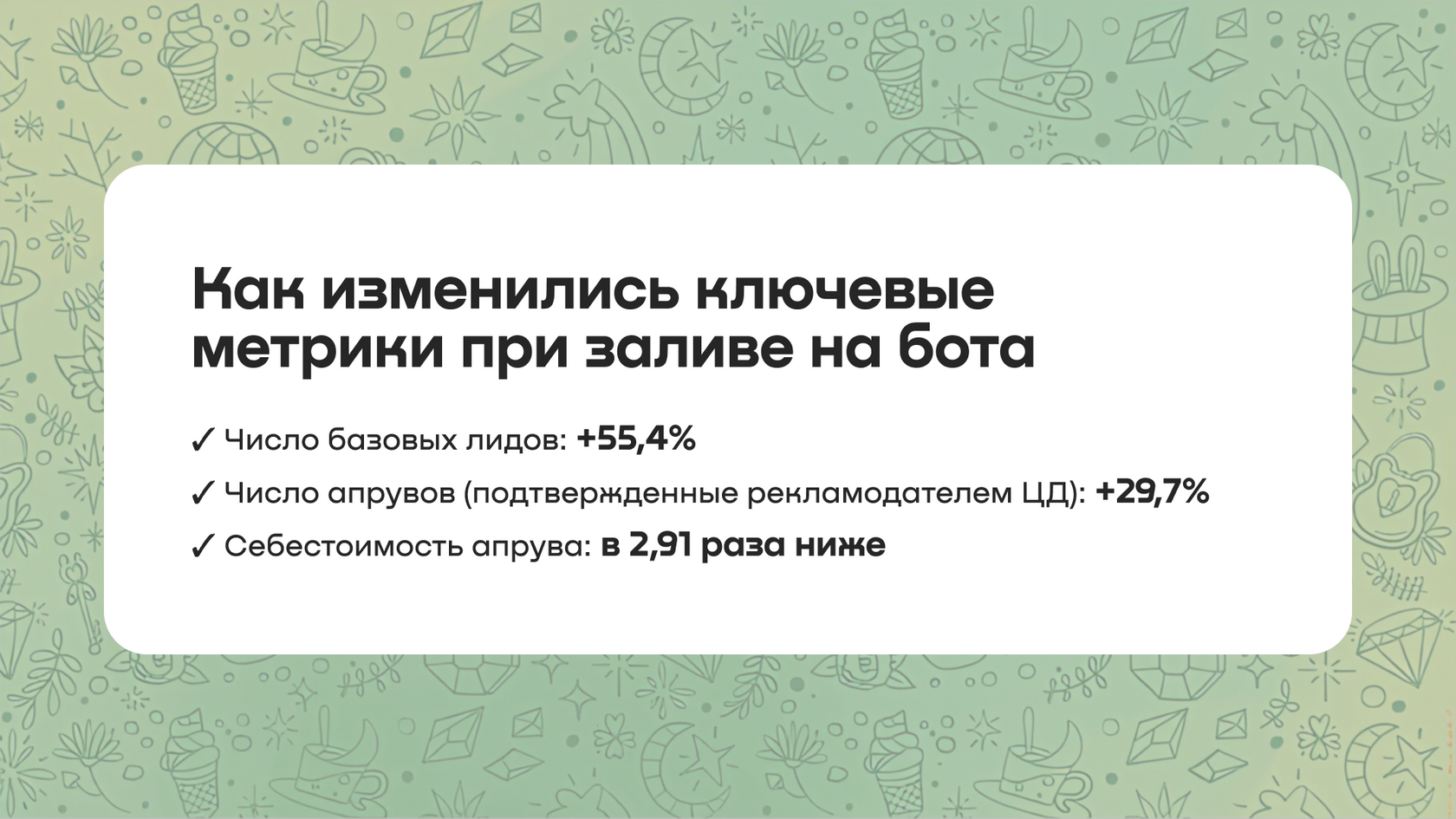 Есть еще очень важный функционал — отправка сообщений пользователям. Пользователей можно сегментировать на основании их ответов на вопросы бота и разным сегментам отправлять релевантные рекламные сообщения бесплатно. Также есть возможность подключать мини-приложения внутри Telegram, с помощью которых можно реализовать огромное количество вещей.