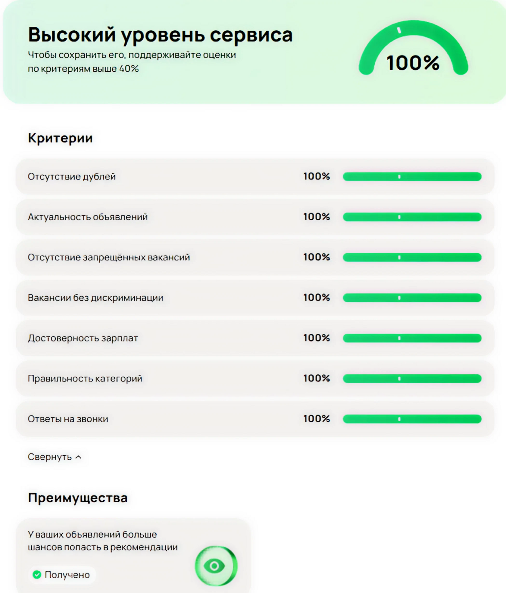 - Расширенный — можно скрыть конкурентов (в ваших объявлениях не будет блока «Похожие вакансии») и заполнение профиля компании